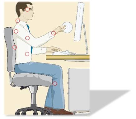 - Uso de rato e teclado diariamente no exercício da profissão (tendinite na mão, pulso, cotovelo, ombro e omoplata), caso mais comum.
